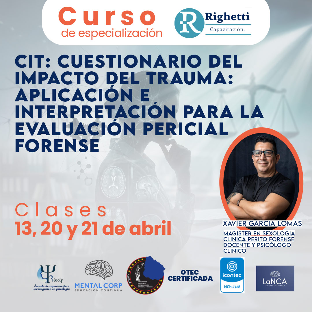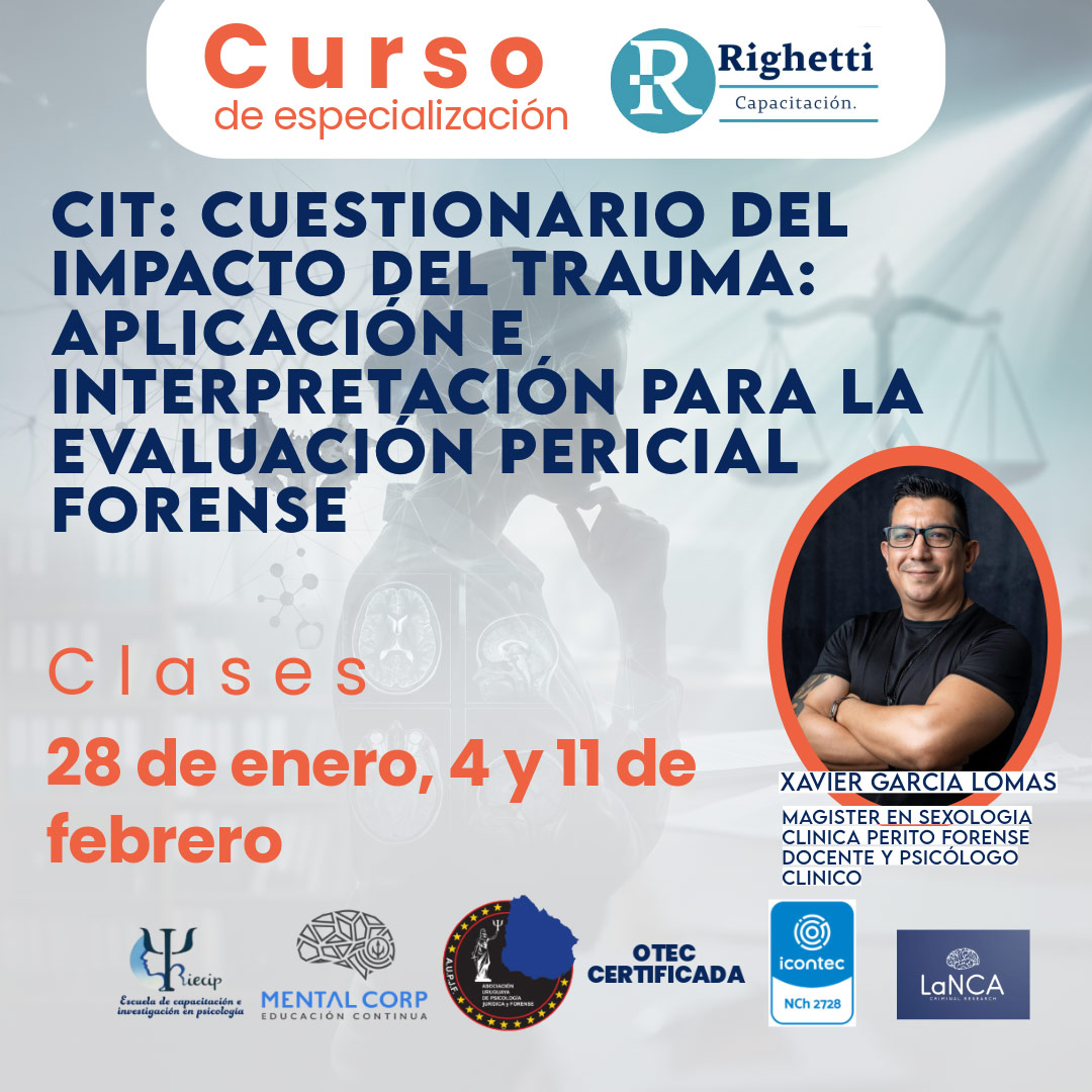 11/02/2026Curso de especialización CIT: Cuestionario del impacto del trauma: Aplicación e interpretación para la evaluación pericial forense